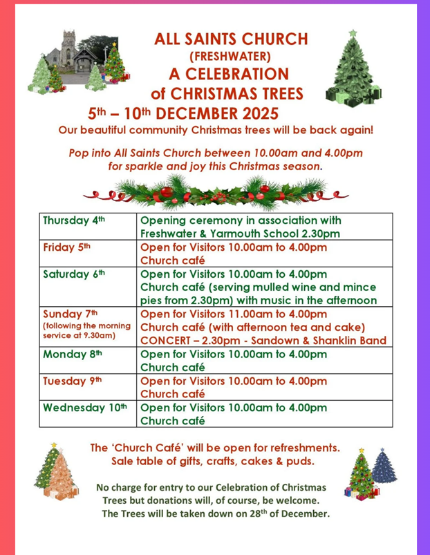 There is still time to view the wonderful Chrismas trees created by local organisations at All Saints Church Freshwater.