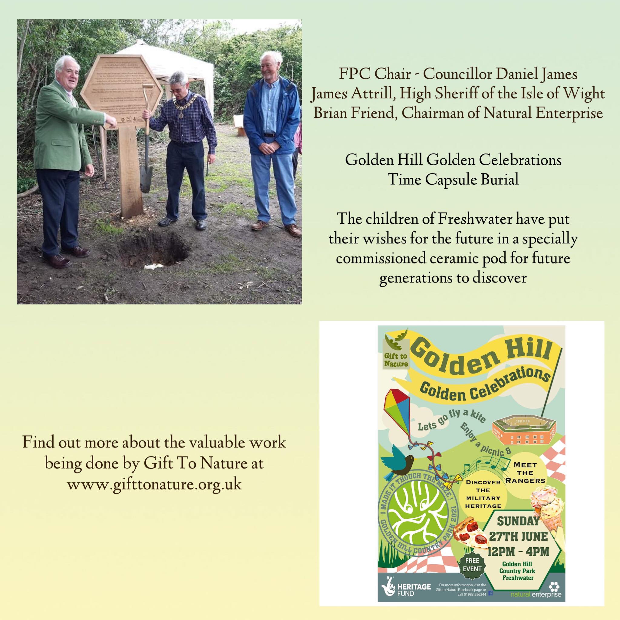 Freshwater Parish Chair – Councillor Daniel James was joined by James Attrill – High Sheriff for the Isle of Wight and Brian Friend – Chairman of Natural Enterprise to assist in the burial of a time capsule, filled with wishes for the future, by our local children.