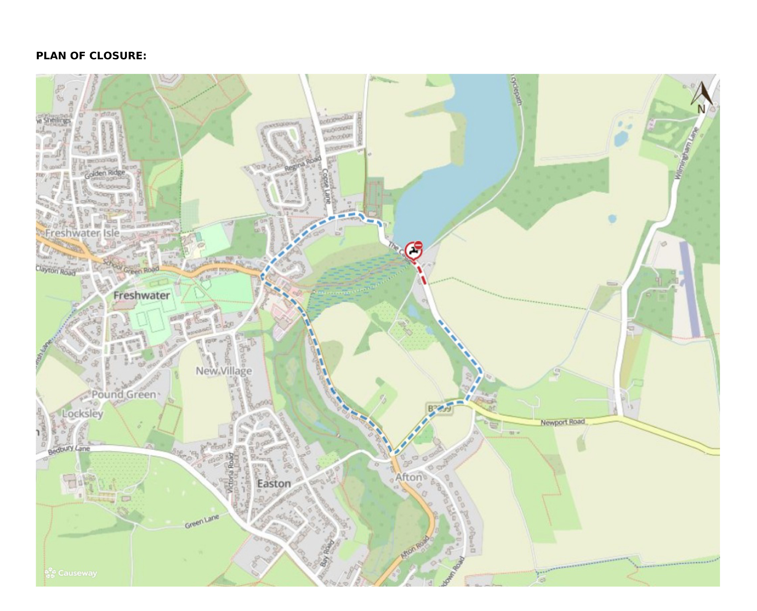 ROAD TO BE CLOSED: The Causeway between its junction with Freshwater Bridleway 61 and its junction with Freshwater Bridleway 25, for a distance of 95 metres.
